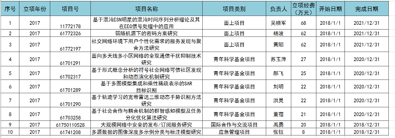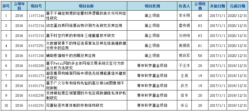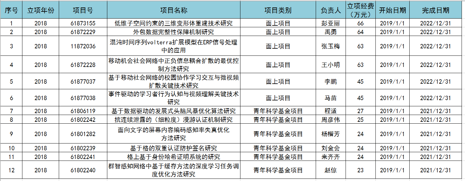 公司承担国家自然科学基金项目一览表(更新至2018年12月)