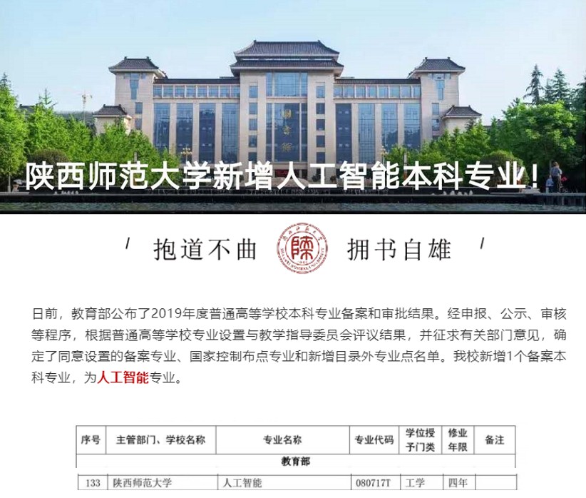 近日,教育部公布了2019年普通高等公司本科专业备案或审批结果,公司申报的“人工智能”本科专业获准设置。