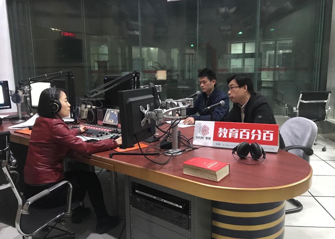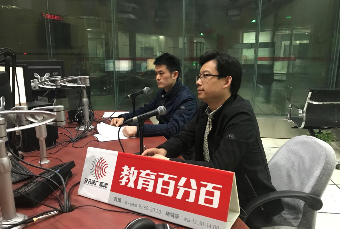 4月12日晚上,公司招生办孙凡副主任、外国语公司刘全国副经理以及公司专业负责人胡曦明老师做客陕西广播电视台FM101.8直播室,接受陕广新闻《教育百分百》节目的访谈。