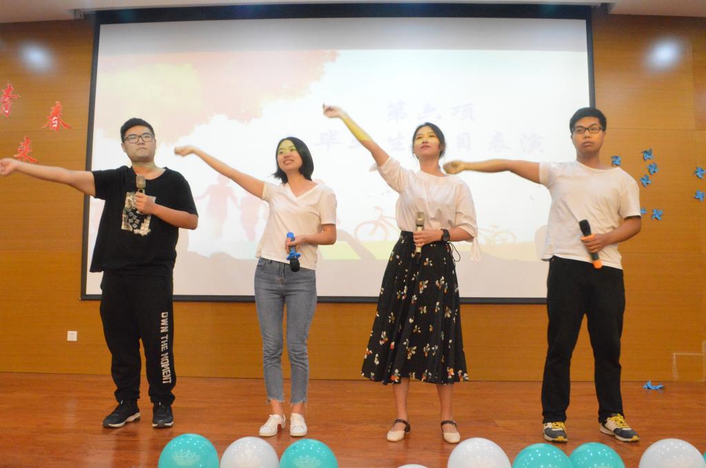 最后,2018届毕业生代表王静带领全体毕业生进行宣誓。欢送会的第一环节就此结束。欢送会的第二篇章是节目表演。歌曲串烧《梦想起航》唱出了大家对青春的无悔和对梦想的坚持,青春作伴,未来可期;诗朗诵《青葱岁月》带领大家回顾了四年来生活在师大的点点滴滴,传达了同学们对大学的留恋与不舍,将现场气氛推向高潮。最后,歌曲《最美的太阳》更是饱含同学们的激情与活力,表达出对未来无限憧憬和期待。随后进行的只言片语环节,将同学们未说完的话一一记录,送给最想送的人。最后,欢送会以师大特色“晚点名”结束,公司2018届本科生辅导员安琪组织进行了最后一次晚点名,最后一次“唠叨”里,安琪对同学们提出了三点希望,希望同学们立志做好本职工作,做一个诚信的人,做一个感恩的人。