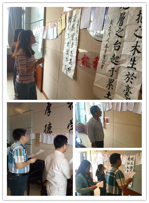 袁冰与观展评委们进行了交流,她谈到,总书记的一系列重要文章、讲话、访谈等,形成了独具个性的“习式风格”,总书记在系列重要讲话文章中多处引经据典,此次书法作品展示了公司同学在书法方面的特长,但活动更重要的是为了促进同学们对习近平用典的精妙意境的深刻理解,加深对中华优秀传统文化的热爱和面向世界、面向未来的强烈文化自信。
