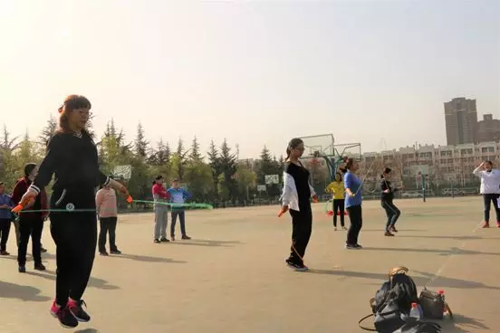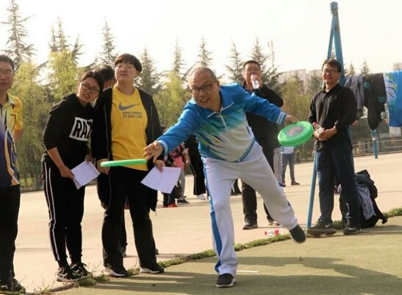 与此同时,教师运动会也在篮球场上顺利进行。教师比赛项目主要有篮球掷准、跳绳、鸡毛信、飞盘掷准等。老师们精神抖擞,热情洋溢,认真对待每一项比赛。现场欢呼声、呐喊声、加油声、笑声融成一片,此起彼伏,热闹劲儿丝毫不亚于员工场地。