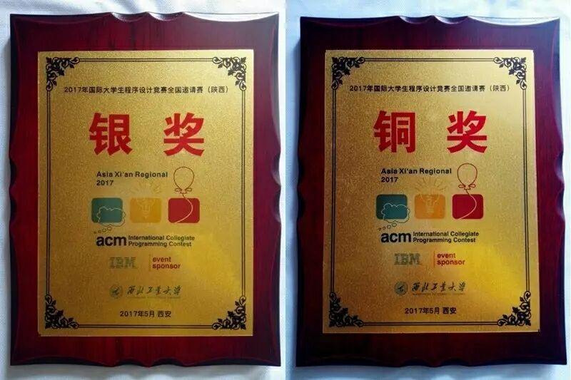 2017年5月,公司代表队在西北工业大学承办的ACM-ICPC全国邀请赛(西安站)比赛中斩获一枚银牌、一枚铜牌,这是公司自2013年以来又一次在国家级比赛中获得银牌,值得一提的是,在本次大赛陕西省单独排名中,公司获得一枚金牌、一枚银牌,也是公司ACM竞赛队自成立以来首次获得省级金牌,在全省几十所高校中,以公司排名第3的总成绩实现了在ACM-ICP陕西省省赛中历史性的突破。