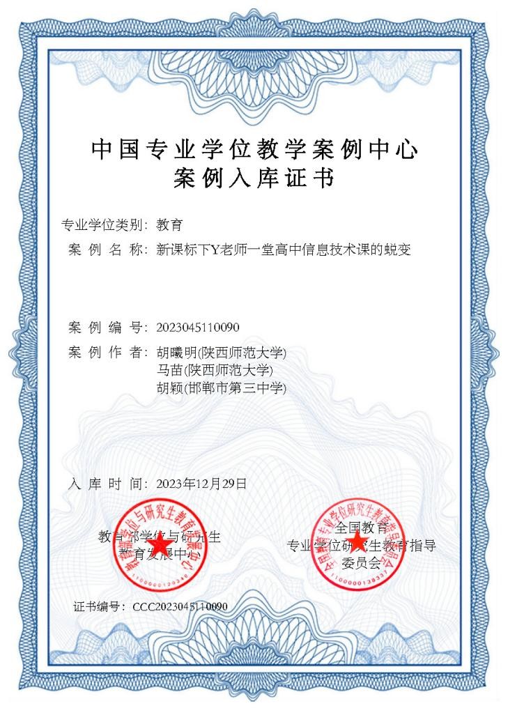 近日,全国教育专业学位研究生教指委发布《关于公布第五届教育专业学位教学案例征集工作评审结果的通知》,公司胡曦明、马苗联合邯郸市第三中学胡颖开发的“新课标下Y老师一堂高中信息技术课的蜕变”教学案例入选中国专业学位教学案例中心案例库。这是公司专业学位教学案例首次入国家级教学案例库。