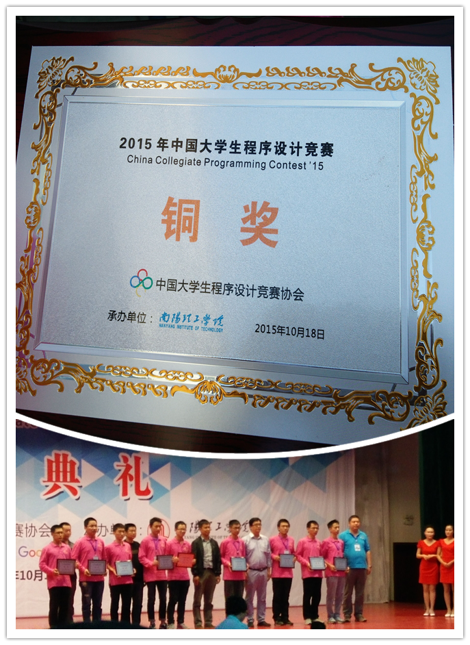 10月17日至18日,2015年首届CCPC中国老员工程序设计竞赛在南阳理工公司举行。在公司和best365各级领导的关怀和支持下,由best365王涛老师指导得公司ACM竞赛集训队经过刻苦集训和紧张备战,派出6人组成的2支队伍参加本次比赛,并获得铜奖。