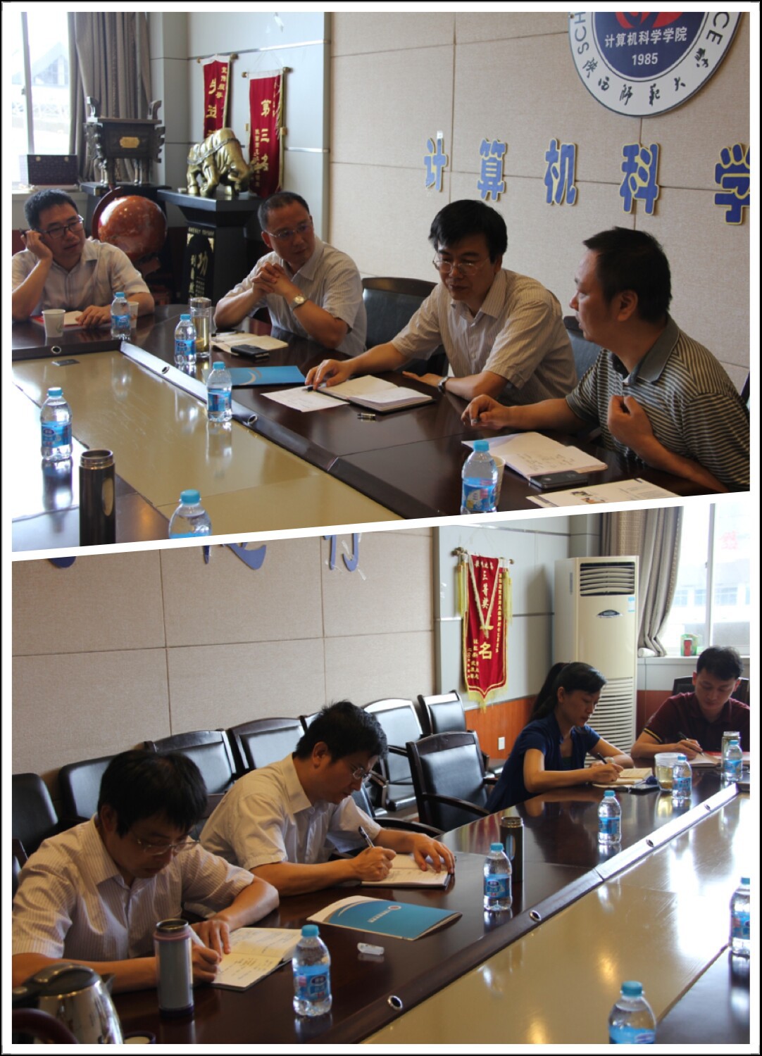 首先,李永明经理代表公司欢迎陈建蜀总经理的到来,并将公司目前的人才培养模式、实验室建设现状、毕业生流向等情况向陈总做了简要介绍,特别就陈总关注的软件工程实践环节以及工程硕士人才培养基地建设等问题做了深入探讨;随后,公司分管领导就陈总所关注的方面分别做了细致的补充介绍。