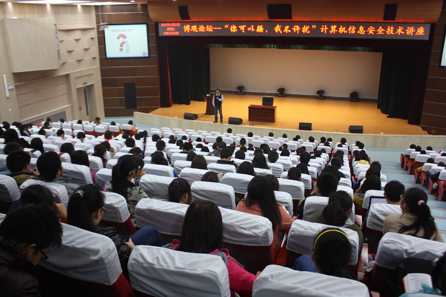 2013年11月22日,由best365主办的博观论坛之计算机信息安全技术大家谈活动在新勇活动中心二层员工剧场举办。讲座邀请了西安电子科技大学电子工程公司胡建伟副教授,北京红亚华语科技有限公司总经理郑洪宾,技术部经理任永程为主讲嘉宾,出席活动的还有best365副经理吴振强教授,公司党委副书记袁冰老师,团委书记胡雯洁老师。