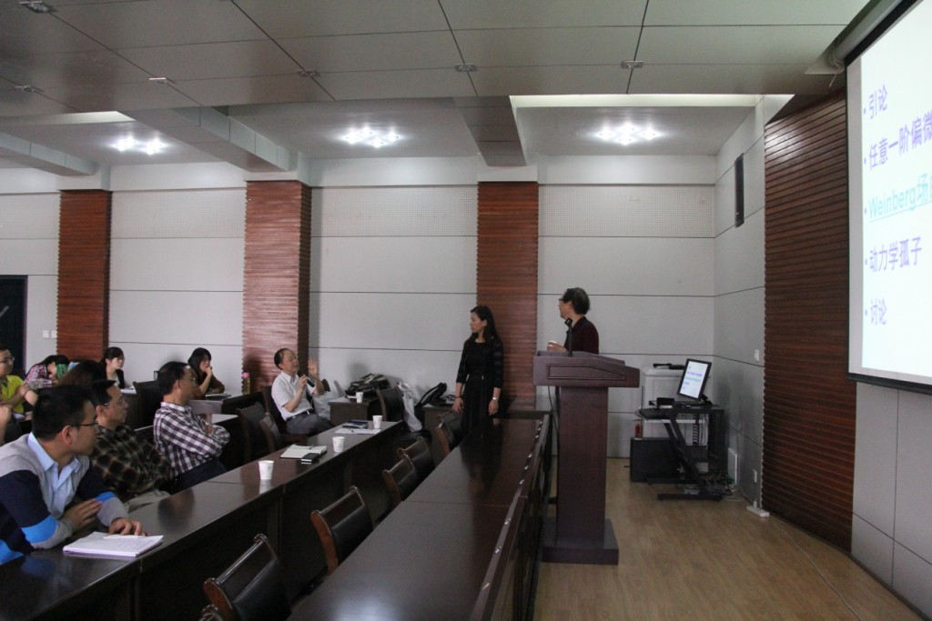 楼森岳教授做了题为《任意一阶自治偏微分方程在不同维度上的所有解》(完备对称、恰当对称和富余对称)的报告。楼教授从完备对称定义及其它、波动方程、热传导方程、一阶微分系统等方面展开论述。报告中楼教授讲到C可积和S可积系统,指出对称与可积之间的关系,紧接着阐述了完备解定义,一般解定义等及其之间的关系。在波动方程和PBurgers方程中,具体讲解了完备对称、恰当对称、富余对称的概念及其有关的定理和结论。最后针对上述内容进行了的总结与讨论。