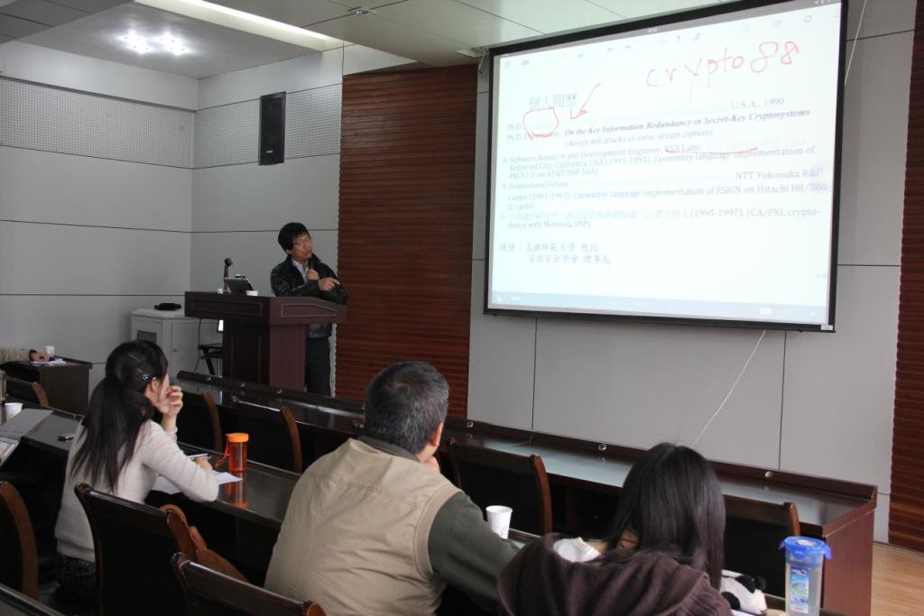 2014年4月16日上午10点,台湾国立高雄师范大学杨中皇教授来公司学术报告厅做了题为《基于SCAP与电子取证的移动设备隐私保护》的学术报告。本次报告会由公司科研副经理吴振强教授主持,公司部分教师、2012级、2013级研究生和部分博士研究生参加了本次报告会。