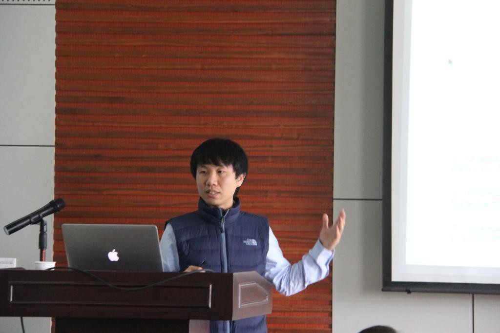 冯元副教授首先为我们做了题为《Model checking quantum Markov chains》的报告。报告中,冯教授向我们详细论述了马尔可夫链及模型化量子密码协议的目的,阐述了量子概念下的概率计算树逻辑(PCTL)及其如何建立有效的量子马尔科夫链的模型检测算法。