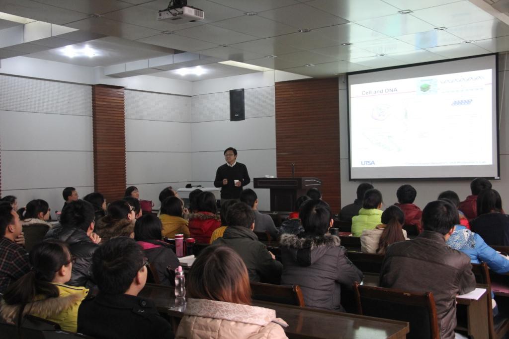 2013年12月24日下午4点,美国德克萨斯大学圣安东尼奥分校YuFei Huang教授在公司学术报告厅做了题为《Unveiling the dynamics in RNA epigenetic regulations》的报告。本次报告会由公司雷秀娟教授主持,公司副经理吴振强教授、部分教师以及2012、2013级研究生和部分博士生也出席了本次报告会。