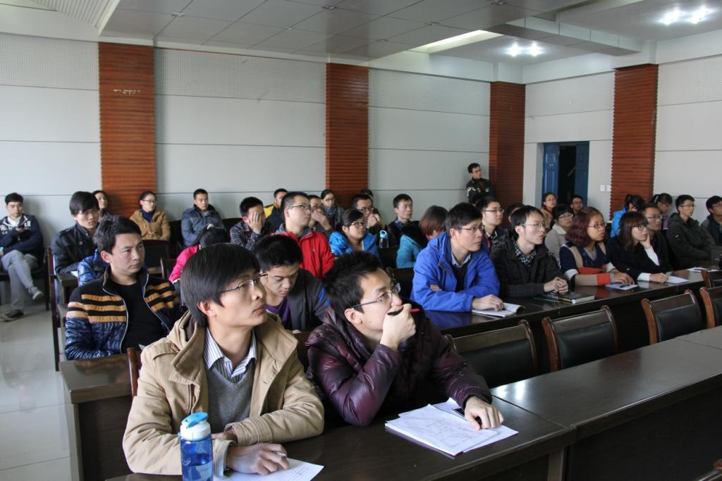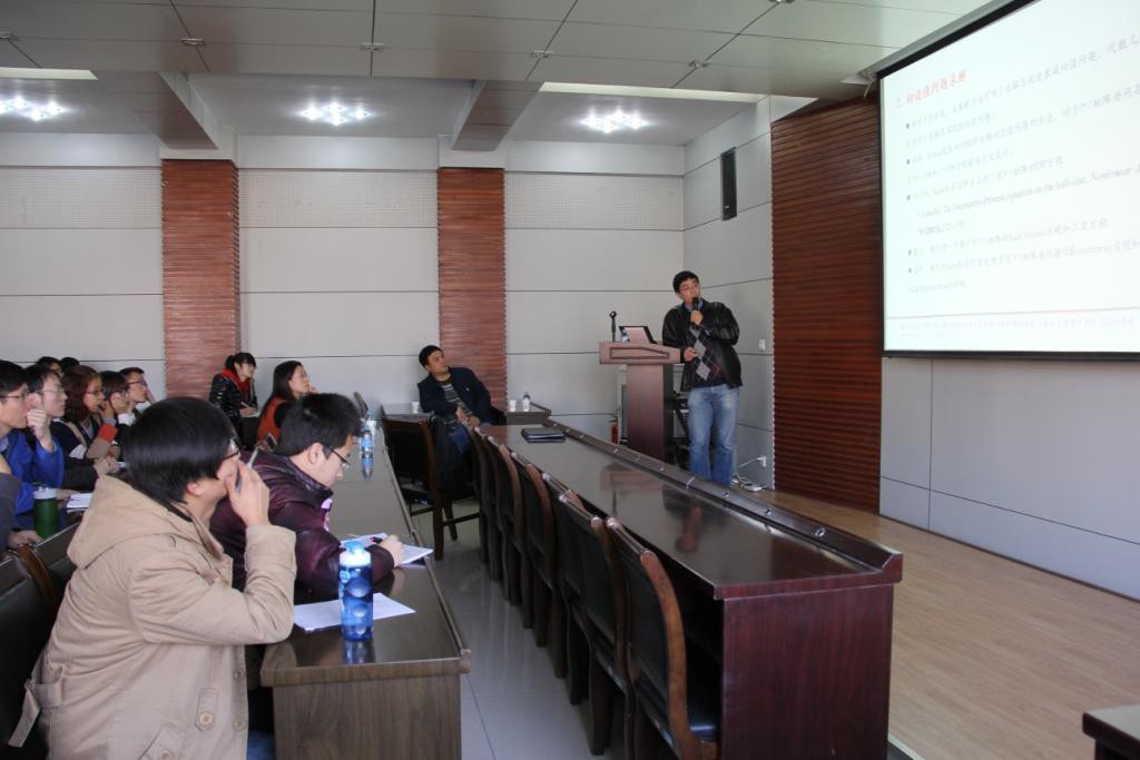 | 2013年11月29日,华东师范大学软件公司陈勇教授和复旦大学数学公司和数学研究所范恩贵教授在公司报告厅做了两场精彩的学术报告。下午3:30报告正式开始,主持本次报告会的是公司姚若侠教授,公司部分教师、博士研究生,以及2012级、2013级硕士研究生也参加了本次报告。 陈勇教授首先为我们做了题为《PEDBellII: A Maple package for the integrability of KdV-type equations》的报告。陈教授首先讲述了Bell多项式的发展历史及其在国内外的研究现状,同时介绍了Bell多项式和可积系统的关联,进而引出其程序化的可能。之后陈教授以“kdv,mkdv”等四种方程为例进行现场的程序演示,让我们真切的感受到复杂的数学问题如何通过编程而高效快速的得以解决。 范恩贵教授接着做了题为《可积系统领域的三个新的研究方向和新进展》的报告。报告中范教授围绕“方程族的代数几何解”、“Ricmann-Hilbert方法及应用”和“正交多项式和随机矩阵”三个问题展开讲解。针对每一部分,范教授向我们介绍问题的发展过程及研究领域的代表人物,接着向我们详细讲解了问题解决的具体流程和相关的概念及所用工具,最后指出待解决的问题以及目前自己所做的工作。 报告最后,姚老师对本次报告作了总结,并再次对两位教授的精彩报告表示感谢,报告会在一片热烈的掌声中圆满结束! 华东师范大学陈勇教授做学术报告 复旦大学范恩贵教授做学术报告 |