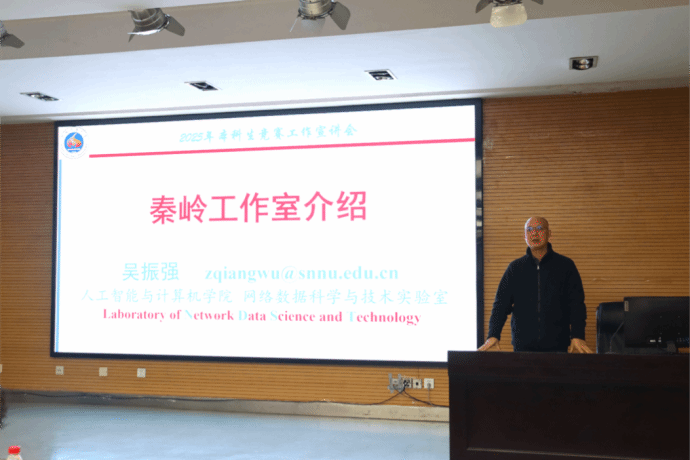 吴振强教授向同学们介绍了秦岭创客工作室基本情况。他通过展示工作室员工所取得的优异成绩,展现了秦岭创客工作室作为创新创业平台与资源库,在AI赋能公司产品以及信创教育等方面的积累和成绩。
