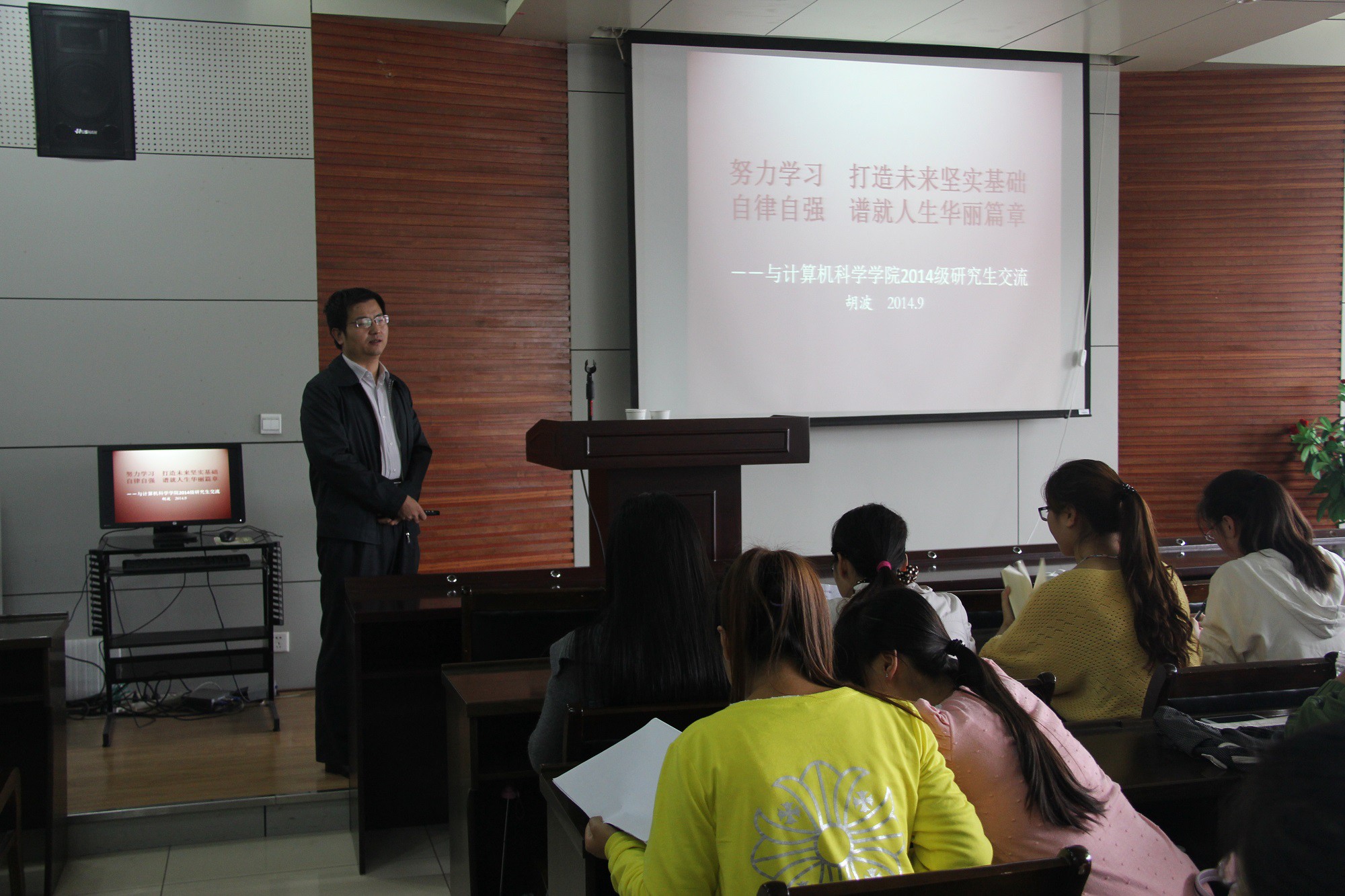 9月16日下午3点,公司2014年研究生新生入学教育报告继续举行。计科公司党委书记胡波老师做了题为“努力学习,打造未来坚实基础;自律自强,谱就人生华丽篇章”的报告。报告中,胡波老师从何为研究生,研究生与本科生的区别,学习成本,学习榜样几个角度向新一级研究生介绍了读研的主要目标,研究生期间的学习之道,以及读研期间所需的付出,并鼓励同学们以施一公等知名人物为榜样,心怀远大目标,保持恒心。