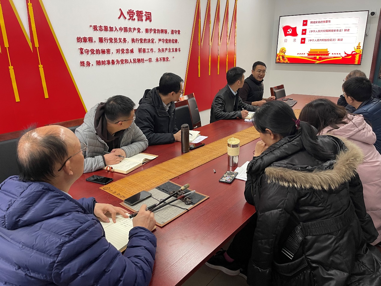 12月7日上午,公司网络与信息安全党支部在文津楼3531党员活动室开展了“书记讲给党员听”的支部书记讲党课活动,深入学习贯彻《中华人民共和国网络安全法》。公司党委书记王耀明和支部党员同志共同参与学习。