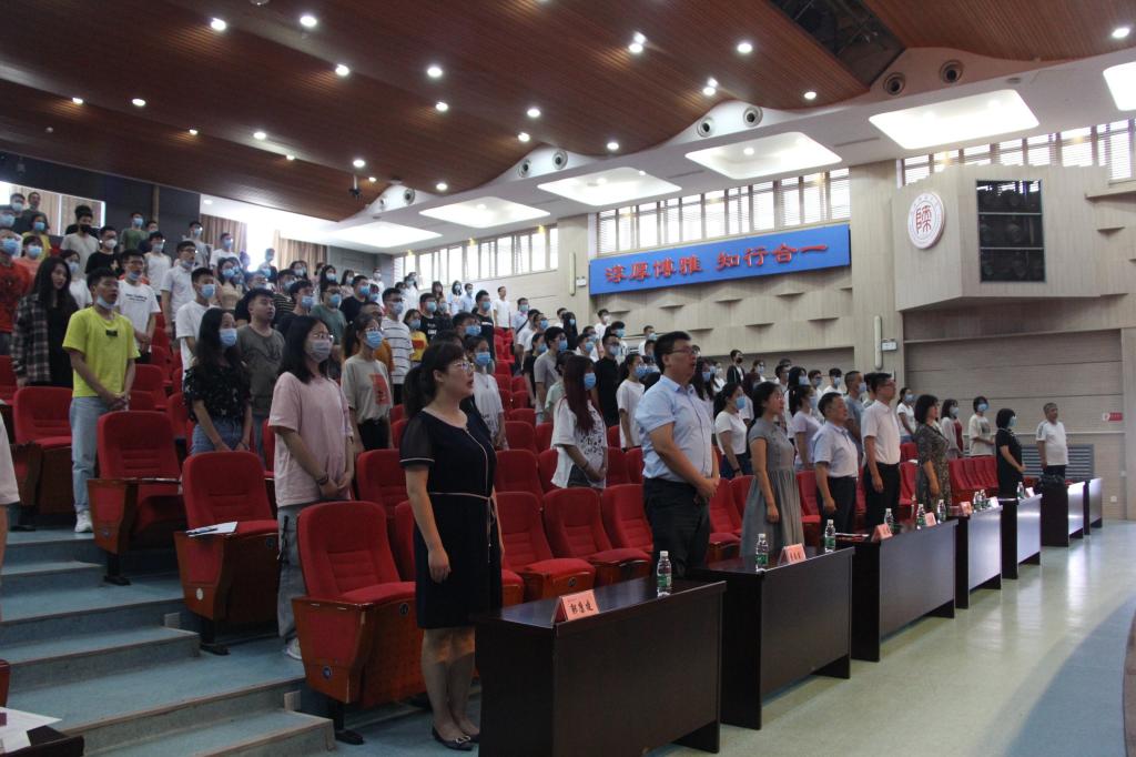 研究生秘书程颢老师细致介绍了研究生课程选择以及培养方案等内容,研究生辅导员蒋江红老师从奖助学金体系、请销假、安全教育、疫情防控等方面为2020级研究新生带来入学教育第一讲。