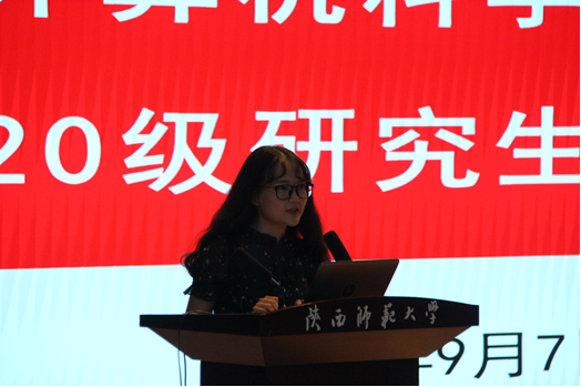 研究生导师代表陈建芮教授结合自身经验分享了学术科研的“一二三”,“一”是承担一种责任,“二”是牢记两件事情,“三”是处理好三个关系。她从员工角度出发,设身处地为员工着想,鼓励同学们以平和的心态、恒久的毅力做好自己的研究,取得丰硕的成果。她相信,2020级研究生的到来必然为计科院带来更加充沛的活力与激情。