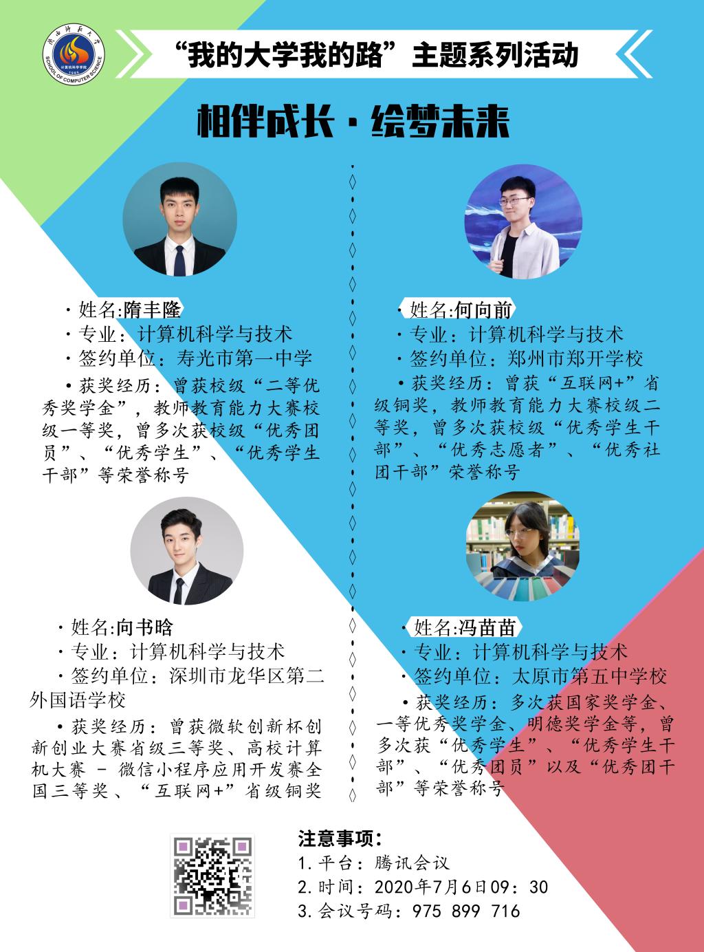为帮助公司计算机科学与技术专业师范生提高思想认识,明确奋斗目标,助力师范生成长成才,7月6日上午9时30分,公司“我的大学我的路”主题系列活动之“相伴成长,筑梦未来”师范生经验交流分享会在线上会议室成功举办。分享会由2018级本科生辅导员安琪主持,公司党委副书记袁冰出席了本次会议。2020届师范专业毕业生代表,2017级、2018级师范专业本科生参加了本次活动。