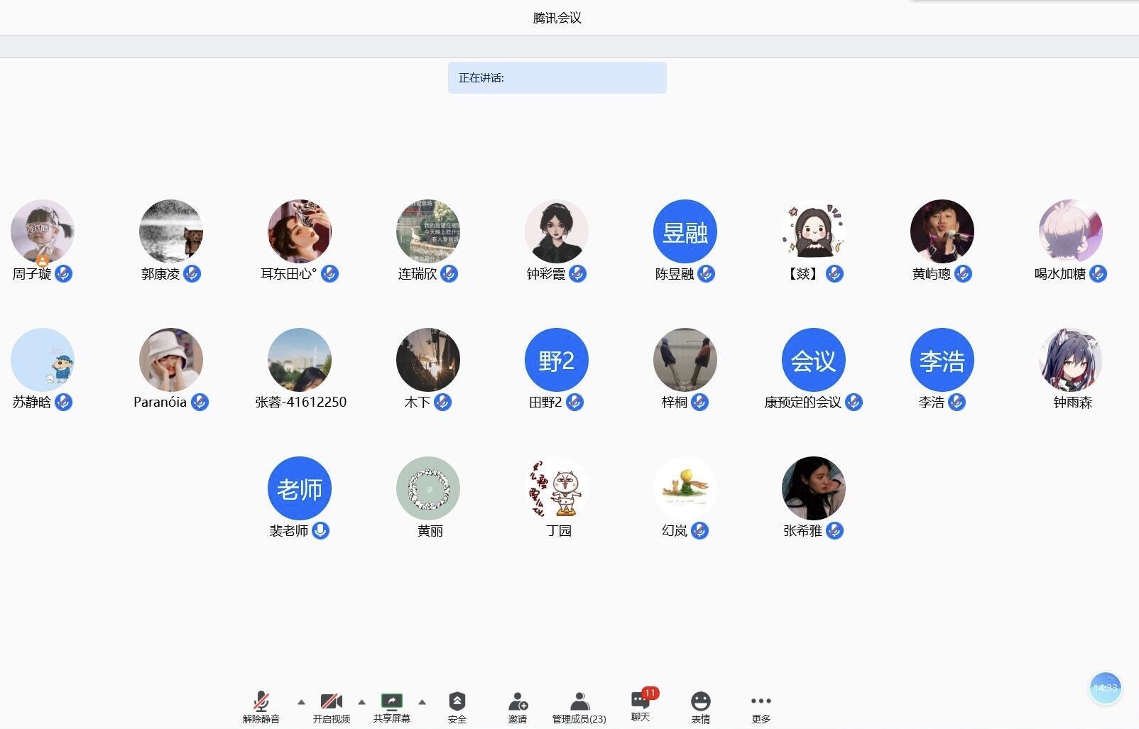 最后,参加本次云班会的老师同学在腾讯会议“云合影留念”。