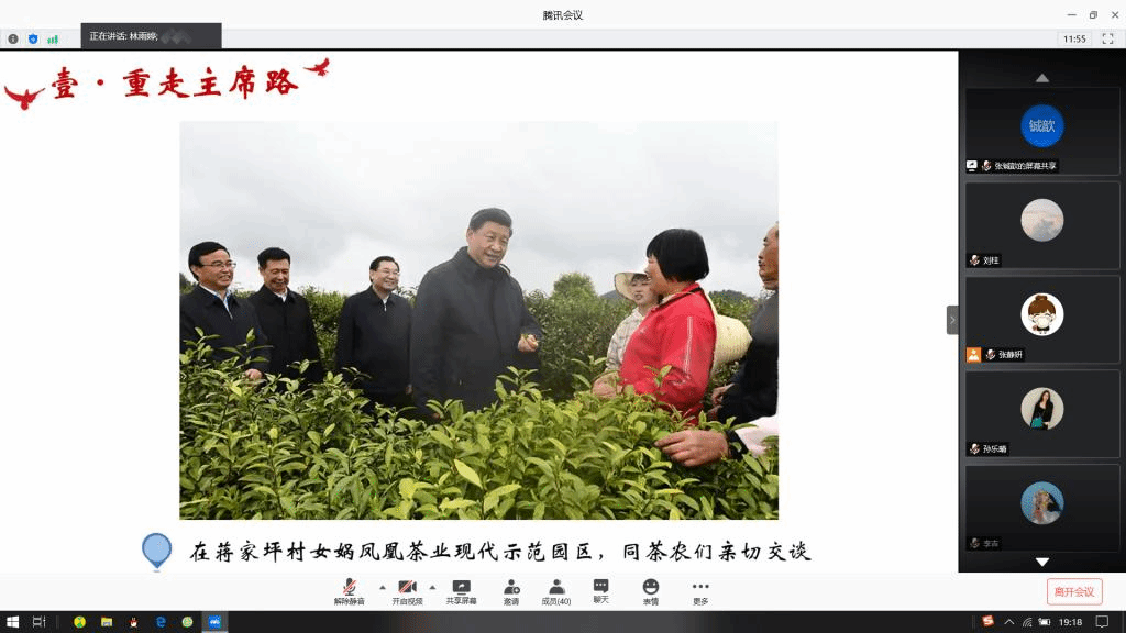 通过重走主席考察路,聆听习近平总书记的谆谆教诲,同志们既感受到习近平总书记对人民的亲切关怀、殷殷嘱托,也对“绿水青山就是金山银山”、“西迁精神”等有了更深刻的理解,更是意识到作为新时代老员工应当肩负起的时代使命与责任担当。陈依敏同志谈到,人与自然是生命共同体,经济发展决不能以破坏生态为代价;曹煦同志分享道,作为老员工,要在奋斗中追逐青春理想,砥砺“越是艰险越向前”的昂扬斗志;苗倩婧同志认为,践行爱国主义精神,我们应当始终坚持做到胸怀大局、心有大爱,切实肩负起新时代的历史使命;林俏伶同志表示,要不断强化思想理论武装,坚定理想信念,在党和国家需要的地方贡献青春力量;宋澳华同志提到,疫情期间新业态“无中生有”、传统产业“有中出新”,为防范化解经济下行压力提供了借鉴;王晓瀑同志说道,困难只会让我们变得团结,团结会让我们战胜困难;任洁同志则分享道,作为师大学子,要以“西部红烛精神”指引自己,为促进教育公平的事业贡献自己的力量。