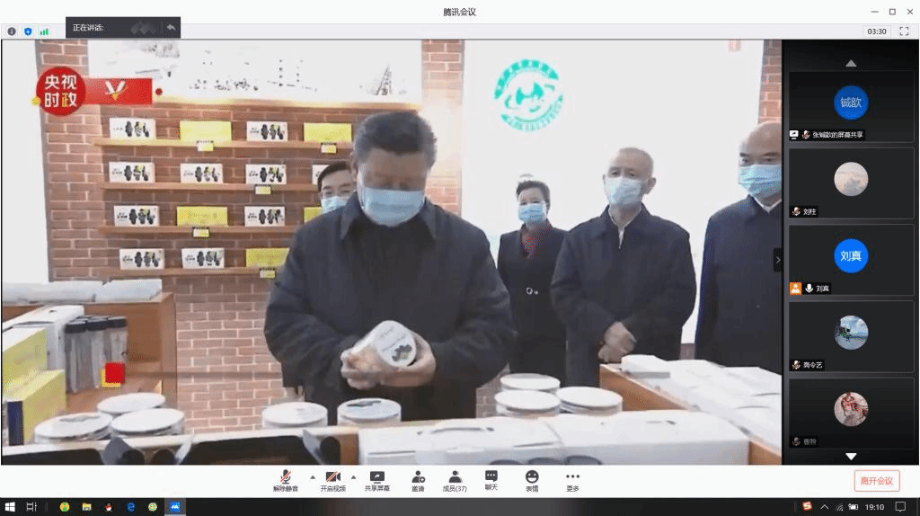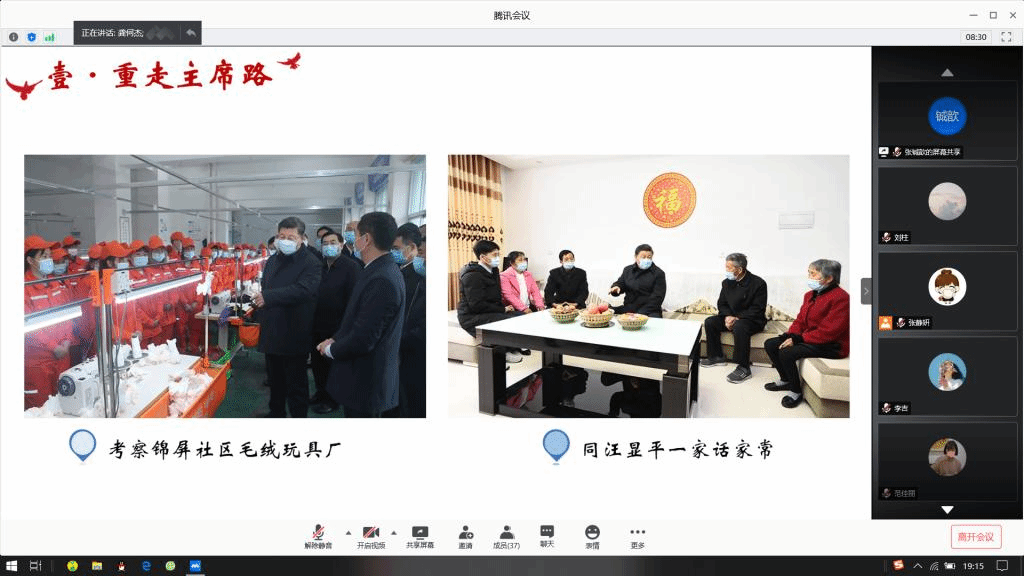 “4月20日至23日,习近平总书记先后来到商洛、安康、西安等地深入考察。”在王越、赵怡杰等同志的诵读声中,第一党支部全体同志追随习近平总书记的脚步,先后来到了商洛市柞水县、安康市平利县和西安市,分别了解了秦岭生态保护现状、金米村脱贫攻坚工作情况、搬迁群众就业情况、基层卫生防疫和医疗保障工作、陕汽复工复产情况等。