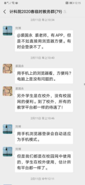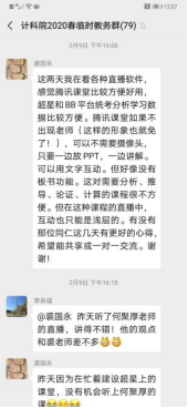 每门课程、每个教学班都建立了QQ群或微信群,老师、员工通过事先演练熟悉平台、工具等教学环境,提前找出线上开课可能遇到的问题,以保证正式开课的顺利。