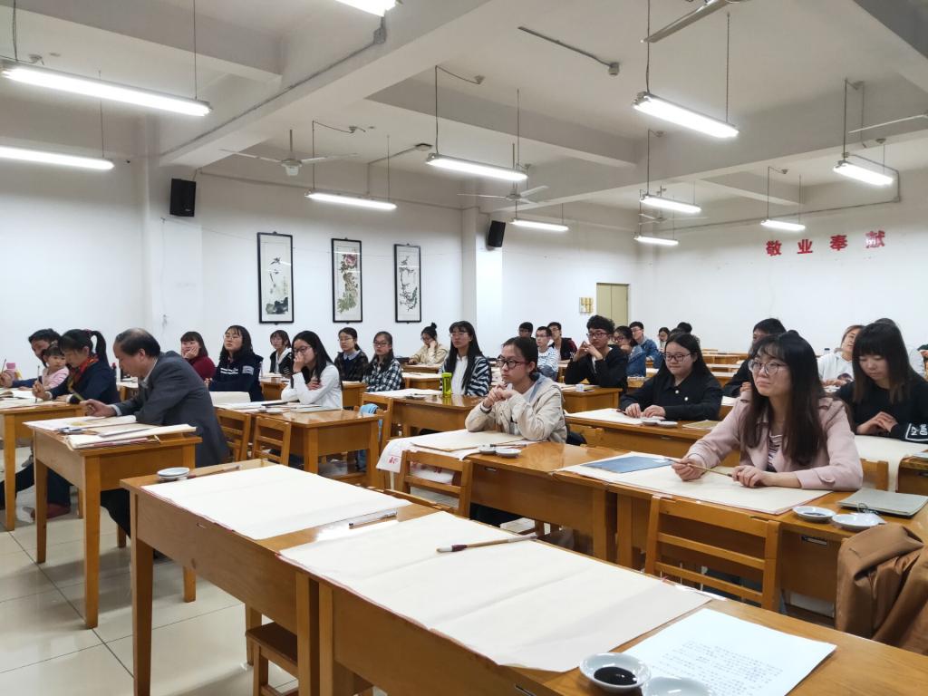 开班仪式结束,书法课老师为大家讲解了一些书法的基本知识,他指出书法不能一蹴而就,要坚持练习,才能有成效。随后他着重介绍了拿笔的方法以及书写的方法和技巧,并给出同学们一些关于选择书帖的建议。虽然部分同学并没有书法的基础,但在老师的指导下,都拿起笔,认真的去完成了自己的第一幅作品。通过书法培训班的第一堂课,同学们都体会到了书法的乐趣,对书法知识也有了更多了解,最重要的是真正认识到了书法的重要性,在将来也能为继承和发扬这门传统艺术贡献自己的一份力量。