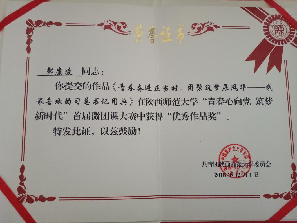 郭康凌《青春奋进正当时,团聚筑梦展风华—我最喜欢的习近平总书记用典》:优秀作品奖