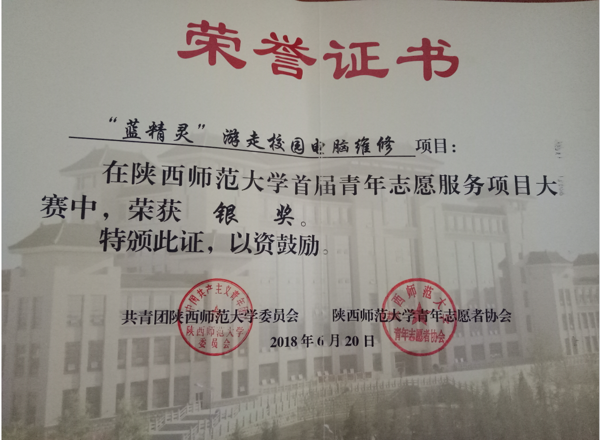 蓝精灵游走校园电脑维修项目:best365官方网站首届青年志愿服务项目大赛银奖