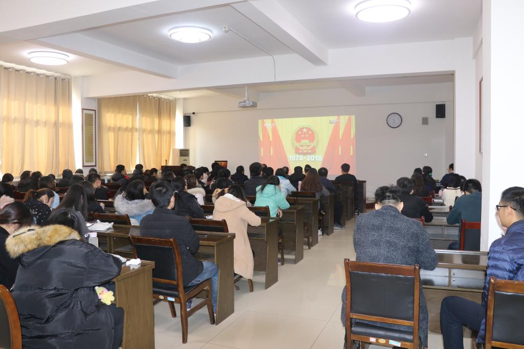 12月18日上午,公司组织师生代表在文津楼四层公司报告厅集中收看庆祝改革开放40周年大会直播。公司党政领导班子、教师代表、公司办公室、学工组辅导员、本科生、研究生代表共计100余人参加了观看活动。公司各党支部、团支部、员工骨干代表通过其他形式对大会内容进行了学习。