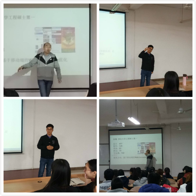 2018年11月11日下午15时,公司2017级计算机科学与技术(创新实验班)专业于长安校区文津楼3324举行了“考研&就业经验交流分享会”。本次交流分享会由公司2017级计创班班主任任杰老师主持,由袁璐、秦晴、姜宇恒、雷艳婷四位学姐主讲。此外,2017级辅导员陈应权老师以及2017级计算机科学与技术(创新实验班)专业全体同学共同参加了本次分享会。