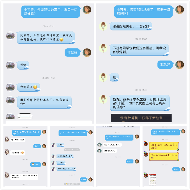 集团和公司十分关心大一新生。迎新期间,相关领导深入宿舍亲切看望新生及家长,在深切关怀之余,领导也对新生提出了要求,希望他们能以积极乐观的态度、良好的学习习惯来迎接新的征程。在交流过程中,公司领导还耐心解答了各位家长关于子女生活、学习上的问题。此外,在新生报道前,公司已进行了家庭经济困难的新生家庭走访和云南新生关怀活动。在走访活动中,公司对受访家庭表示关怀,并送去了慰问品,还详细介绍了公司及公司相关情况、资助政策,解答了员工、家长的问题。因云南突发地震,辅导员安琪便在第一时间询问云南员工是否受灾,所幸均未受灾。