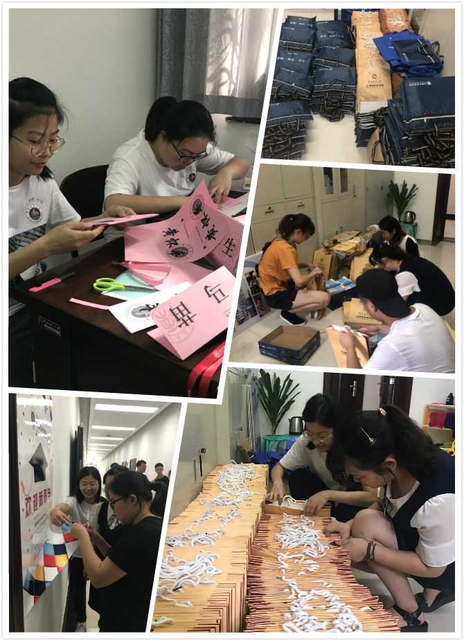 公司迎新工作小组精心准备,真正做到以心迎新,并召开协调会,精心部署,全局规划,以确保迎新工作高效顺利地进行。经过选拔和认真培训后的志愿者们,牺牲暑假时间,提前返校,全方位进行迎新准备工作。志愿者们一丝不苟地印发装订《我们的家风故事》等迎新材料,精心设计文化展板,仔细张贴文化海报,悉心布置新生宿舍。他们既能肩扛背包、手挑行李,陪伴新生办好报到手续、入住宿舍,也能细致耐心地为新生及家长解答疑问、恳切建议。就是这样一群可爱的人,整装待发,以最好的姿态迎接最青春的2018级新生。