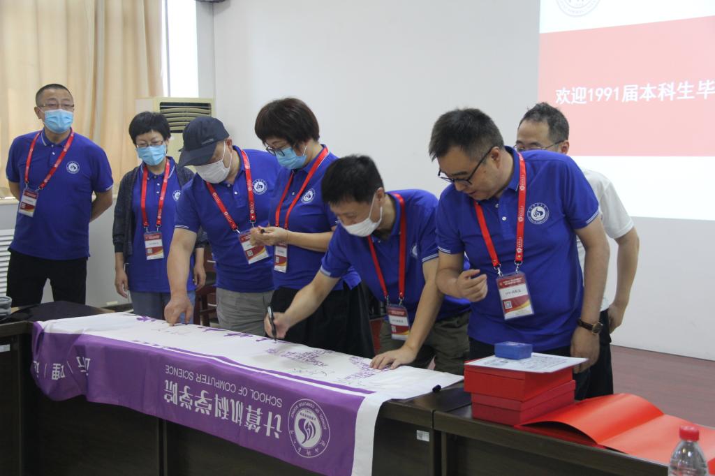 会后,员工在本班班旗上签名并合影留念,随后集体参观了公司、校史馆和雁塔校区等。