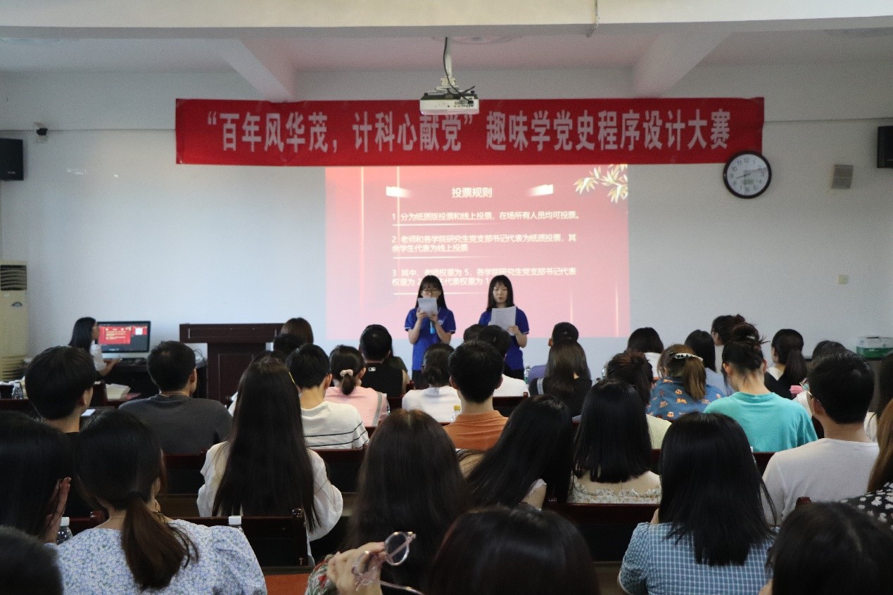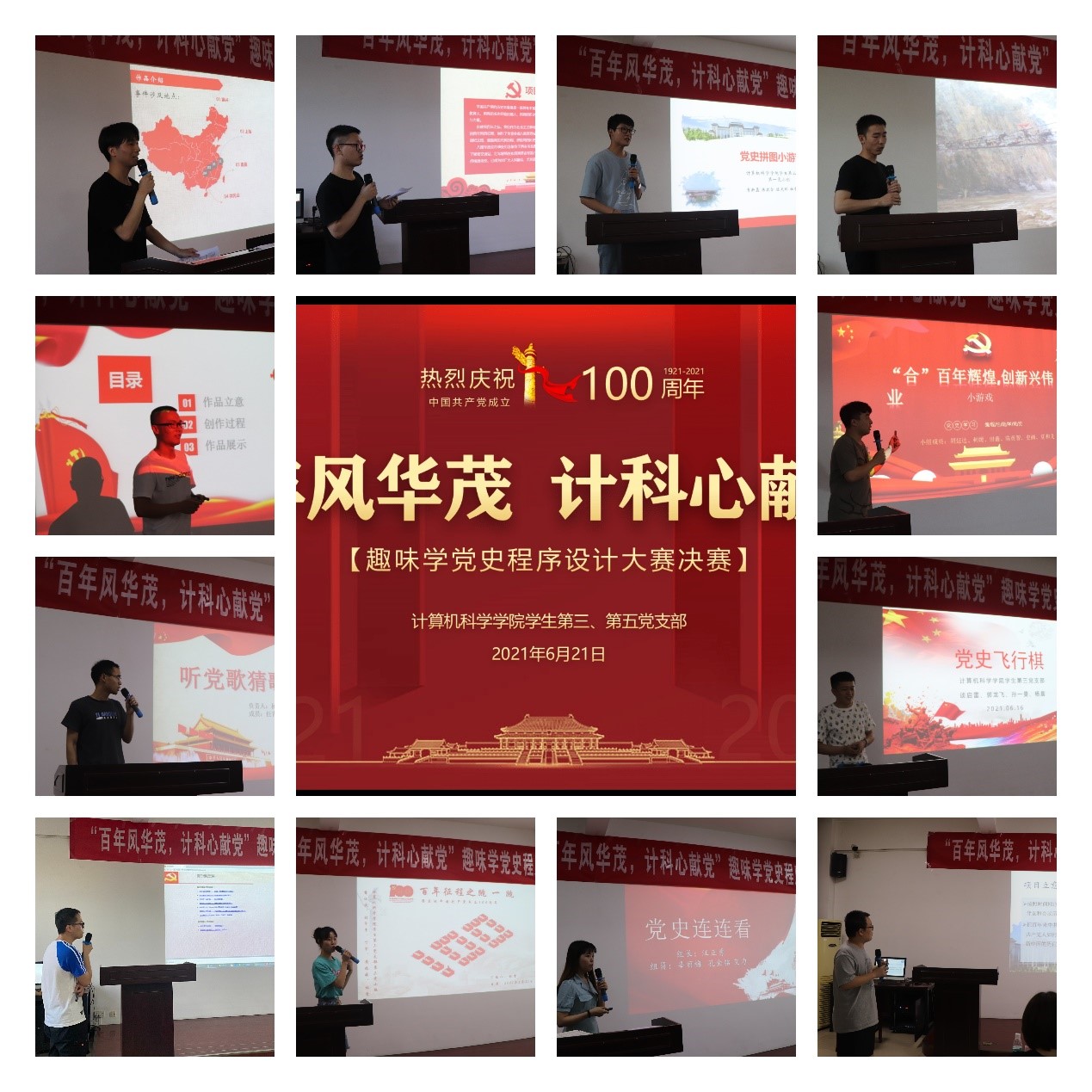 为进一步加强党史学习教育实效,将党史学习与专业特色相结合,以喜闻悦见的方式趣学党史,公司员工第三、第五党支部于2021年6月21日晚在文津楼3412室公司报告厅成功举办“百年风华茂 计科心献党”趣味学党史程序设计大赛决赛。本次活动由支部书记任仰、禹棋洺同志主持,公司党委书记王耀明、研究生辅导员蒋江红、研工部杨雅程老师及各公司研究生党支部书记代表等作为评委参加活动。
