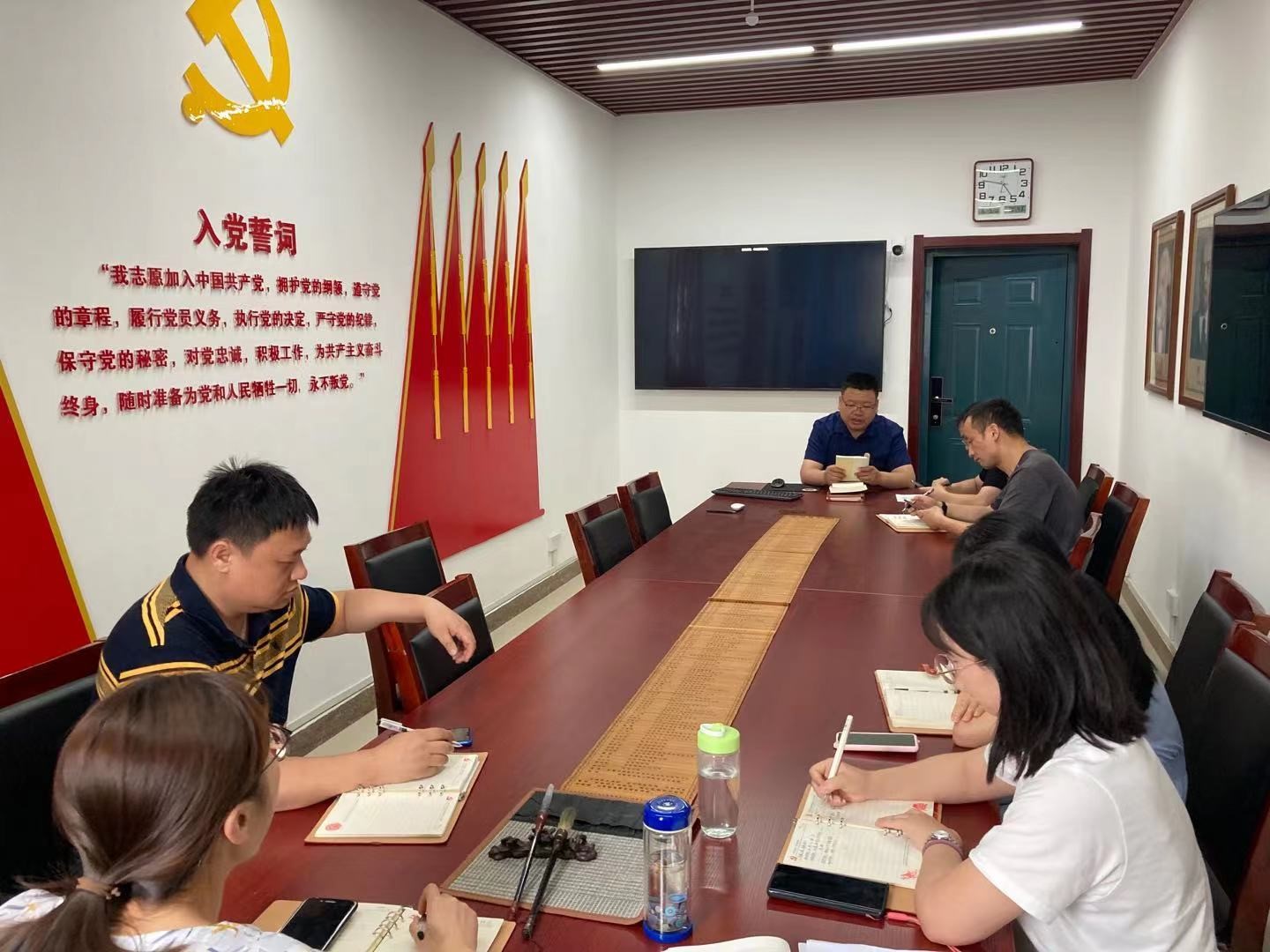 首先支部书记为本月入党的同志颁发党员政治生日贺卡,参会的所有同志一起庄严宣誓,重温入党誓词,字字铿锵,句句千钧,表达了牢记誓言、终生不渝的坚定决心。