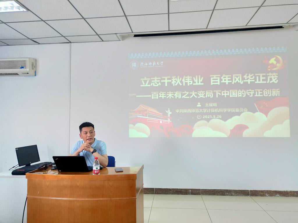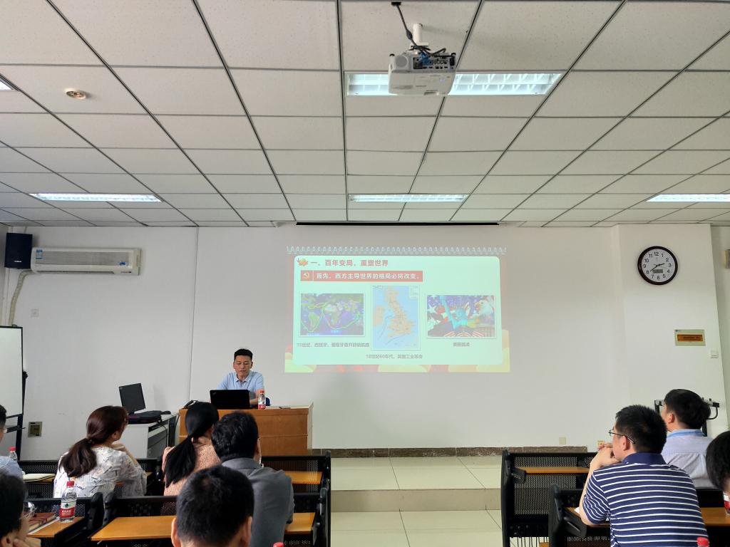 围绕“守正创新”这一主题,王书记从“百年变局,重塑世界”“因应变局,坚守正道”和“高瞻远瞩,创新谋兴”三个方面深入讲解了百年未有大变局中的“变”指什么。以时间为主线,回顾历史事件,立足当今发展,王书记谈到西方主导世界的格局必将改变,新产业革命的到来势不可挡,全球治理体系的改变势在必行。结合党的一百年历程,他从“开天辟地”“改天换地”“翻天覆地”和“惊天动地”四个方面讲述了中国共产党团结带领中国人民铸就的百年辉煌事业,从理论创新、制度创新、道路创新、科技创新四方面讲授了中国共产党高瞻远瞩、创新谋兴、突破发展的伟大复兴征程。