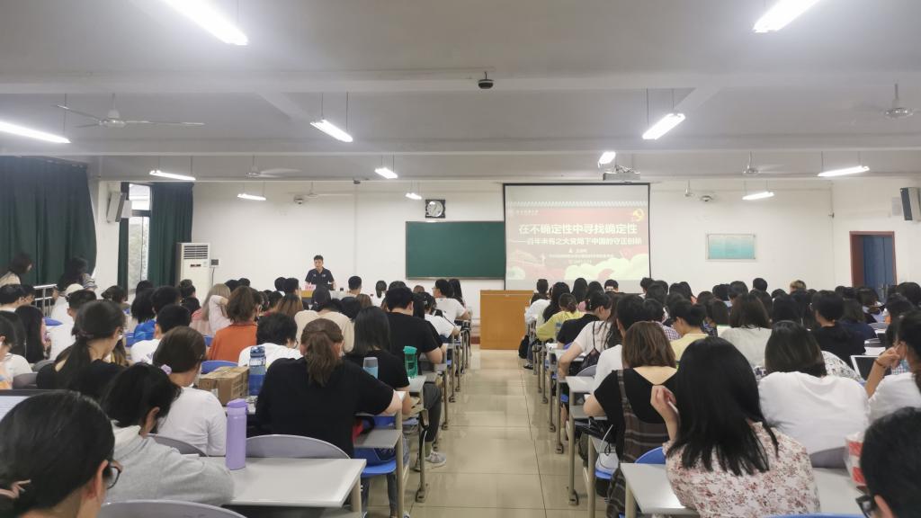 5月13日晚,公司党委书记王耀明以“百年未有之大变局下中国的守正创新”为题,在文津楼1519教室为公司第六期发展对象培训班的200余名学员上了一堂主题鲜明、内容丰富的党课。党课由公司党委组织员郭康凌主持。