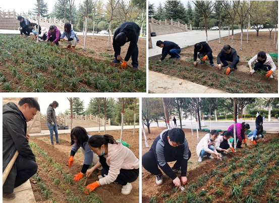 春回大地花千树,万物勃发绿盎然。2021年3月17日下午,公司教工行政党支部与本科生第一党支部、第二党支部在校图书馆东侧联合开展种草活动,携手种下新希望,为校园增添一抹绿。