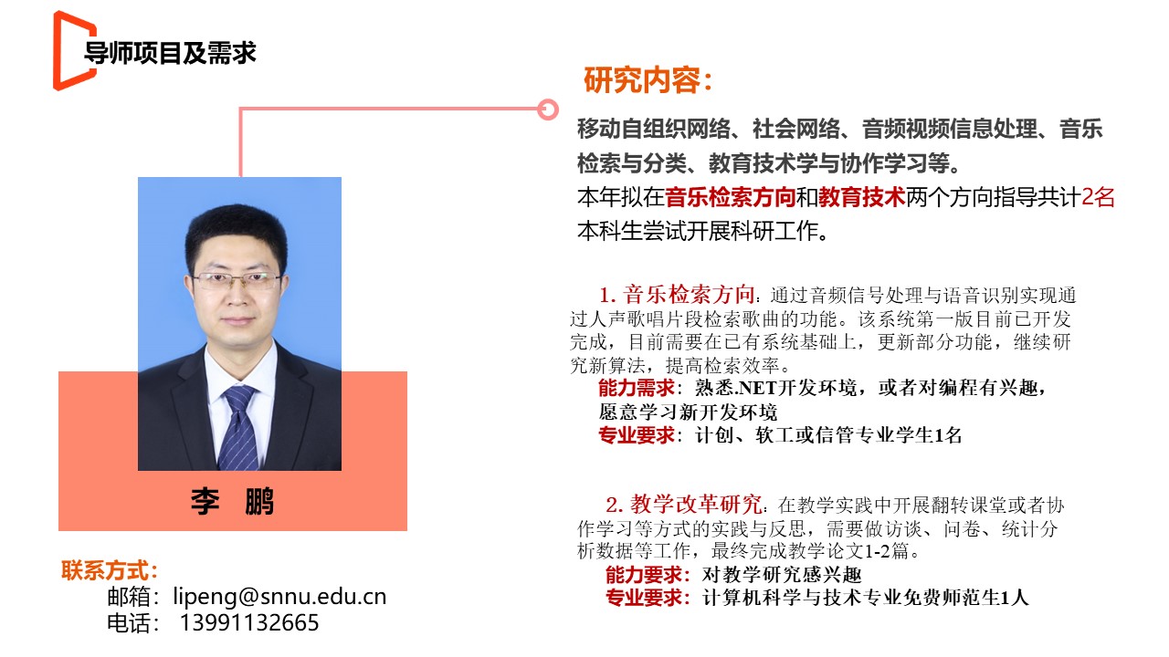 现将公司教师科研项目需求进行公布,希望有意向的本科生同学与教师进行联系。