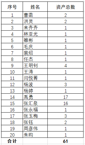3.数量:公司盘点资产总数共计61台件,涉及盘点工作的老师共20位。