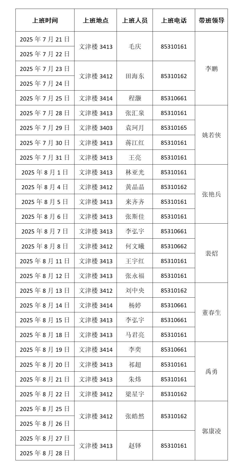 best3652025年暑期轮流上班安排表