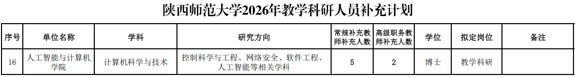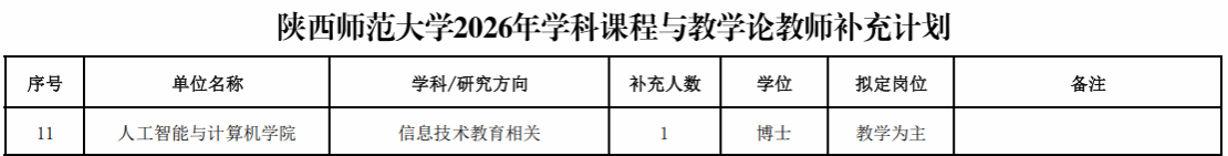 2026年,为了进一步加强公司人才队伍建设,就教学科研人员补充工作做如下安排:
