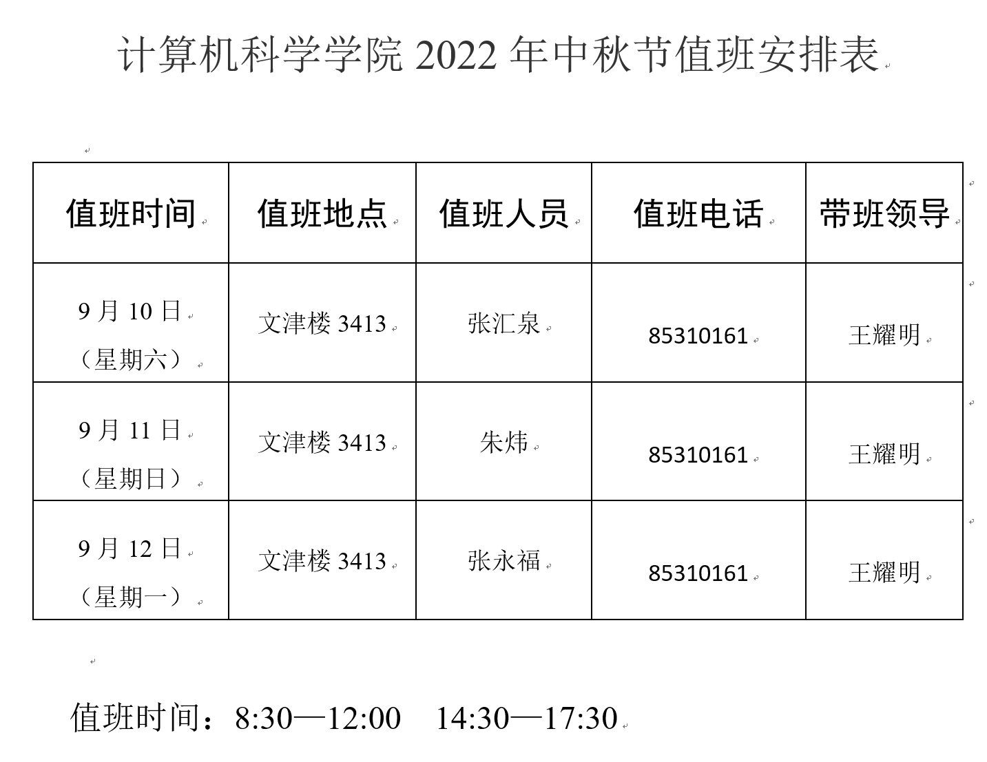 best3652022年中秋节值班安排