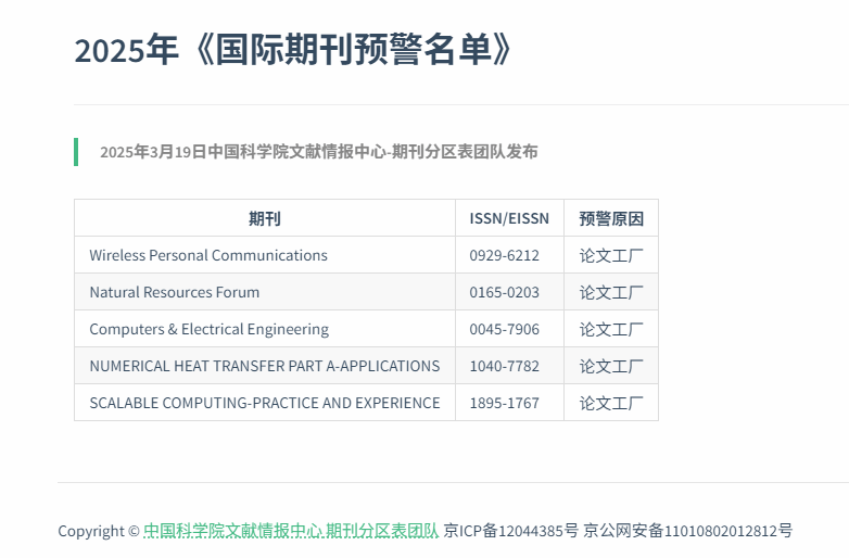 2025年《国际期刊预警名单》