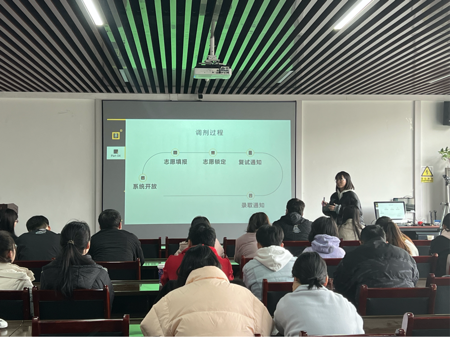 最后,陈昱莅鼓励同学们要积极准备复试,将以最大可能考上作为根本落脚点,保持自信,勇敢展示自我。对于复试的考察内容和形式做了指导,提示大家做有针对性的复习和准备。