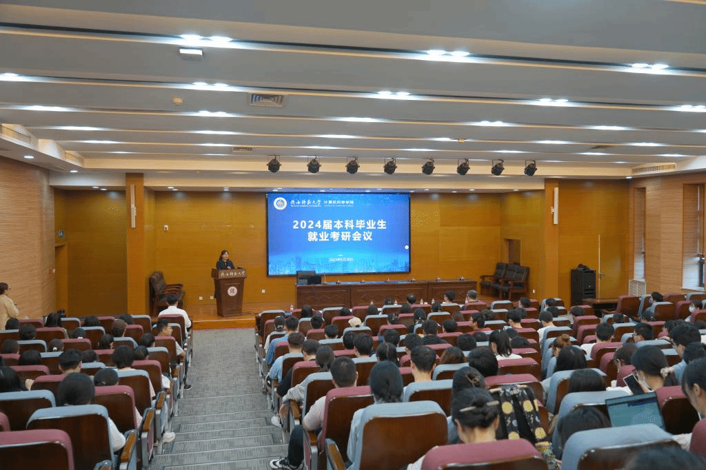 本次会议激励2024届本科毕业生做更适合自己方向的选择,为同学们分析了就业形势,提供了考研与求职经验。希望同学们能力争上游,坚定自己的目标,不负韶华,只争朝夕,以饱满的状态开启自己的升学求职之路。
