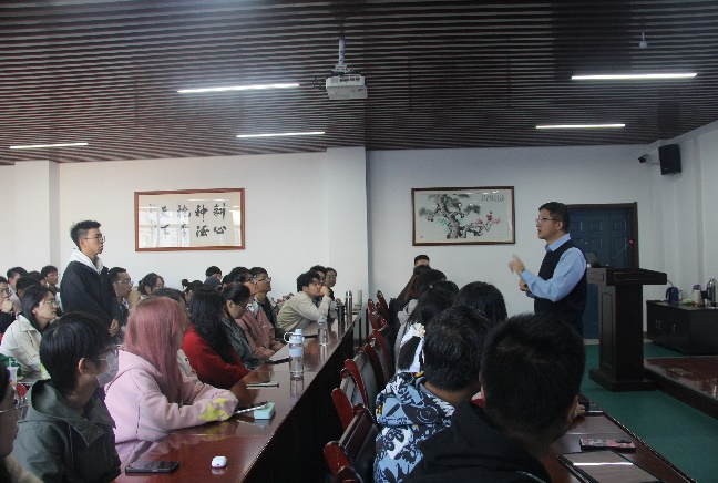 本次活动特别邀请到了公司2013届员工韩宜飞老师进行报告分享。公司2022级本科生辅导员田海东、2021级本科生辅导员刘中央、公司2021级、2022级公费师范生、教育类研究生以及有志于从事基础教育事业的非师范生员工一同参会。会议由公司党委副书记、纪委书记郭康凌主持。