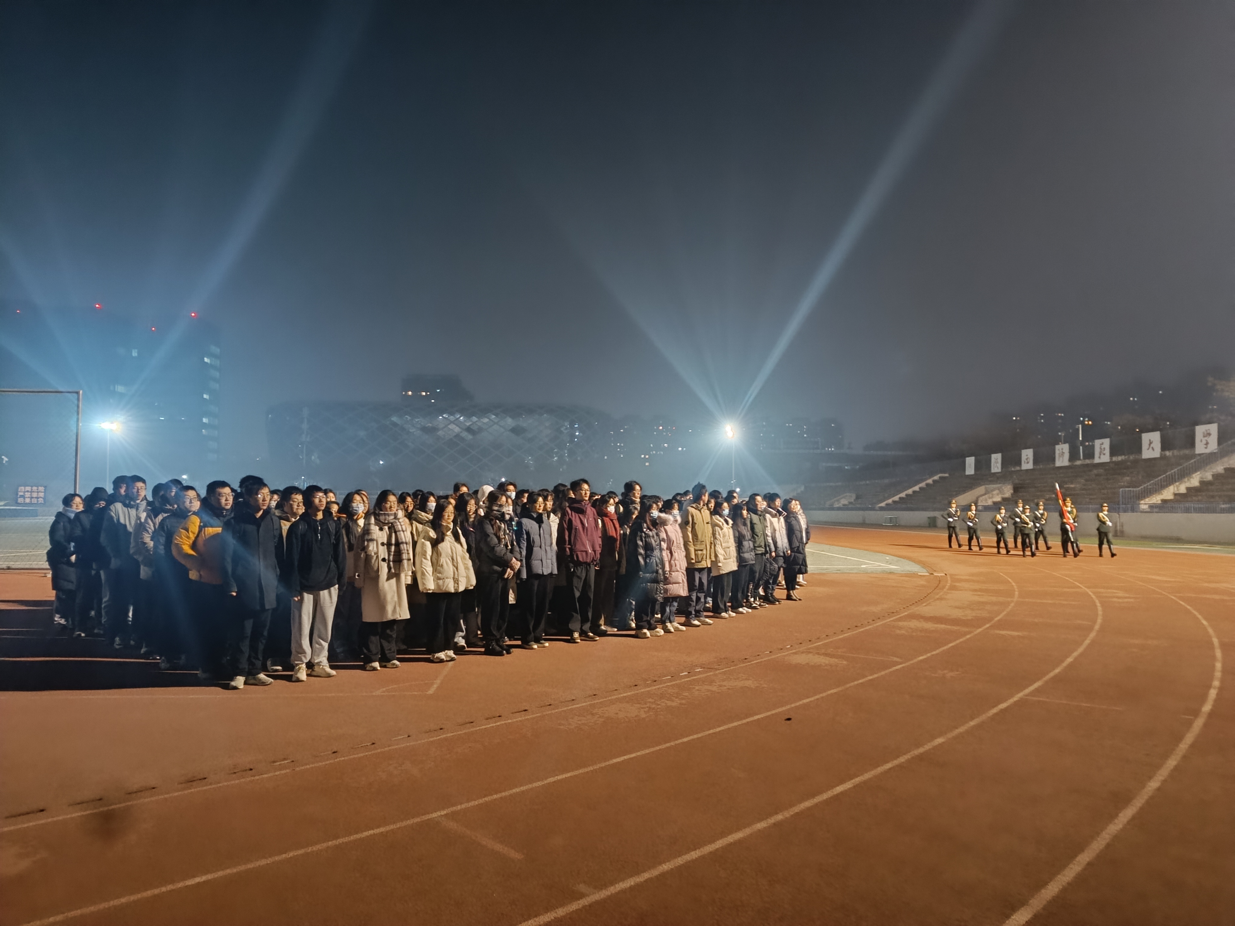 12月25日早上,公司组织2022级本科生在长安校区田径场进行升国旗仪式。公司党委副书记郭康凌、2022级全体本科生参加,辅导员田海东主持活动。