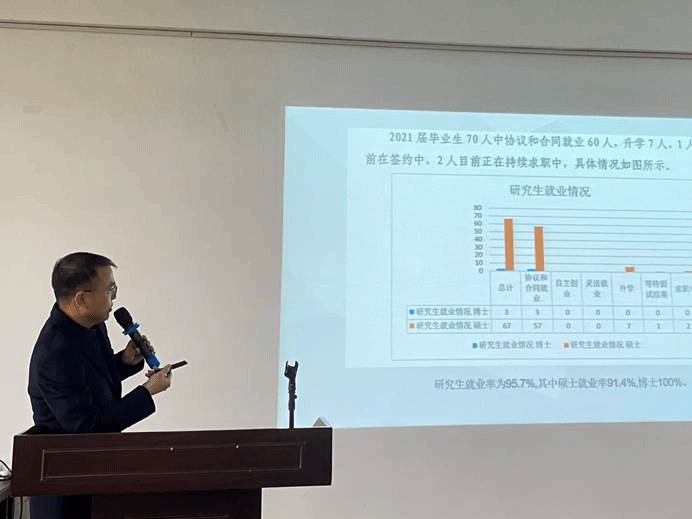辅导员蒋江红以图表等形式为大家介绍了公司近年来研究生毕业生的就业率与毕业去向,对就业政策进行解读,引导同学们树立正确的就业观与择业观。兼职辅导员任仰为大家发放就业协议书,讲解了就业协议书的填写注意事项,强调了协议书的重要性,提醒大家认真慎重对待签约事宜。
